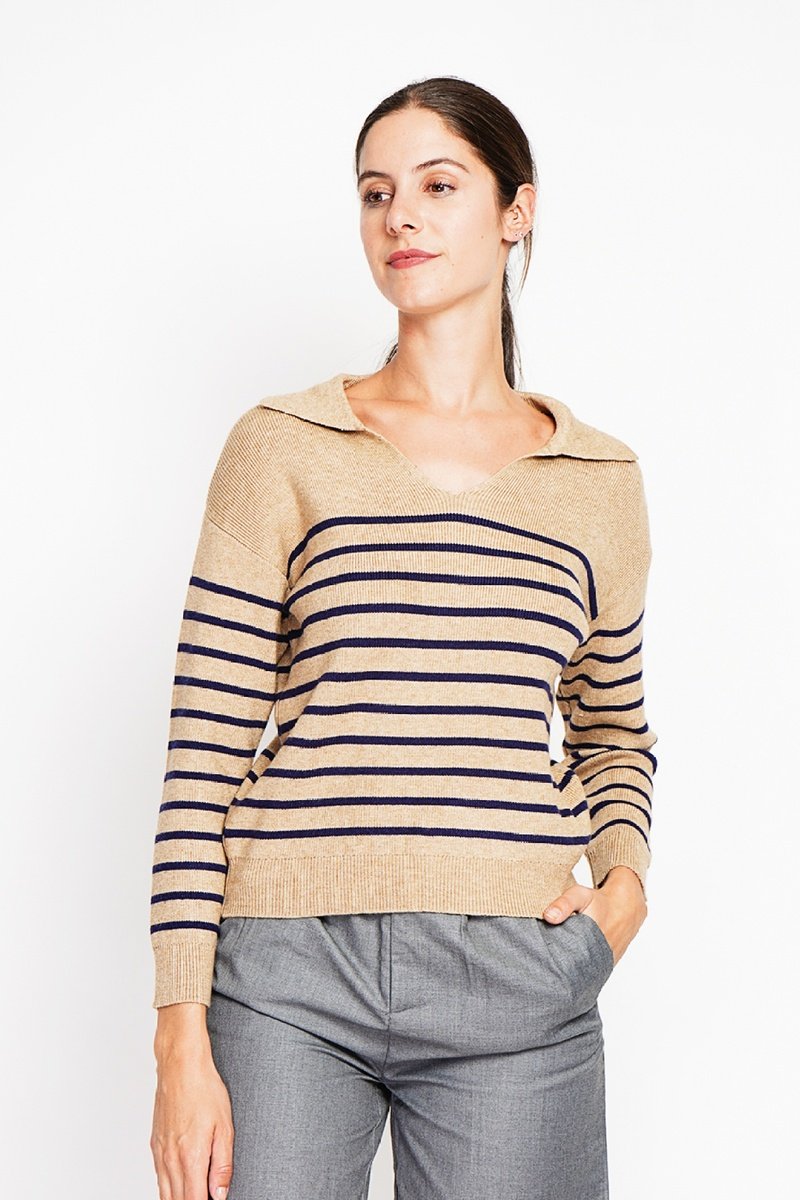 Streepmotief op de mouwen, aan de voorkant en aan de achterkant.