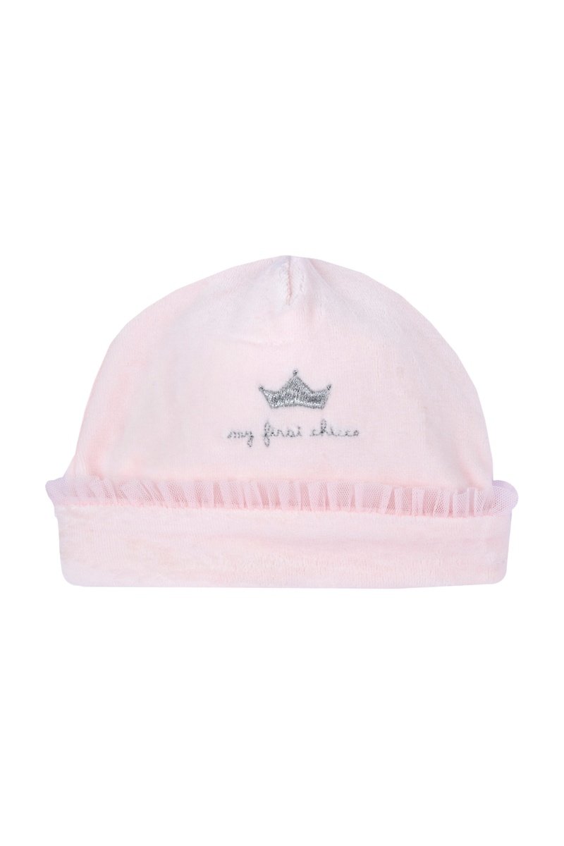 Geborduurd kroonmotief en belettering aan de voorkant.