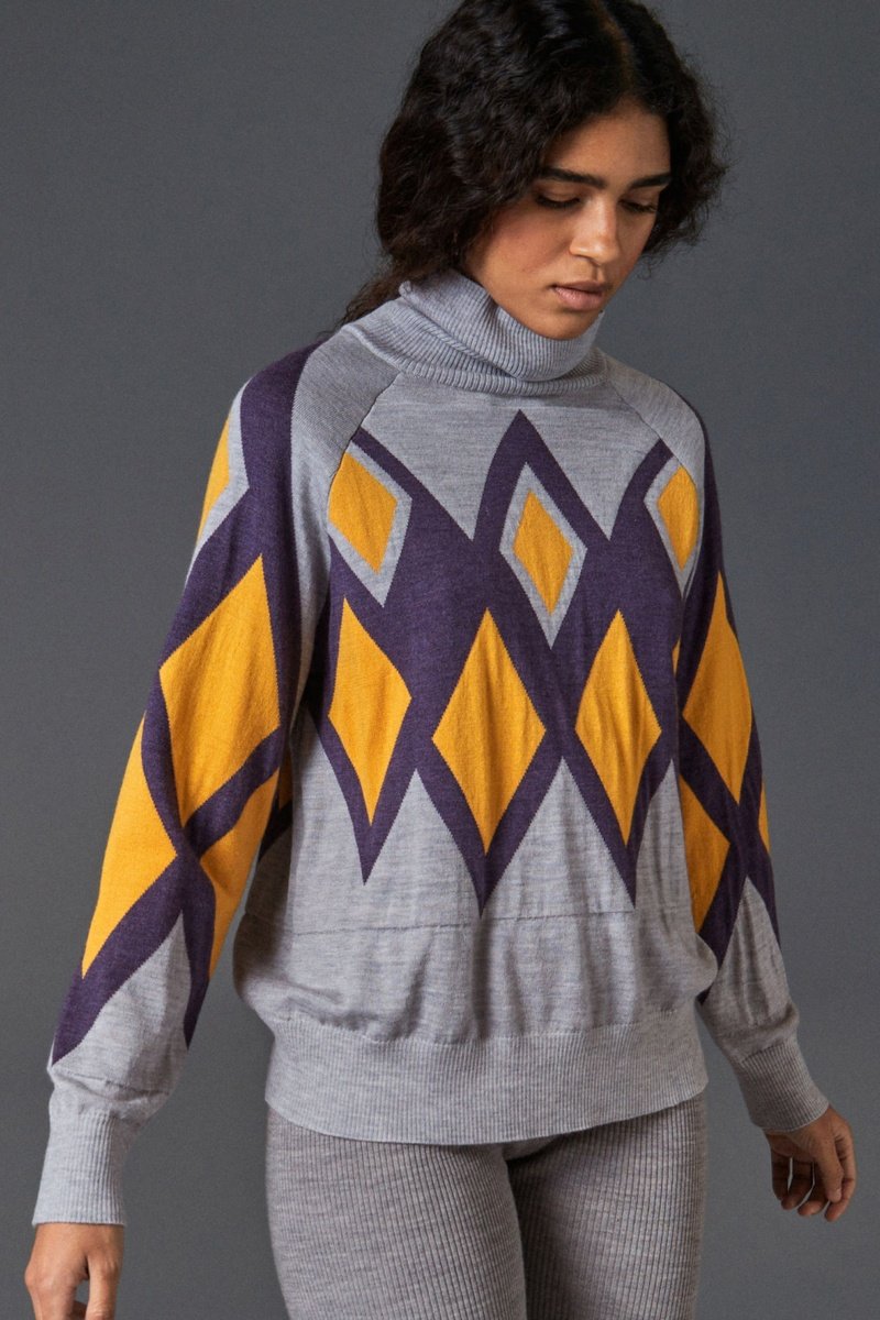 Kleur: grijs, geel en paars