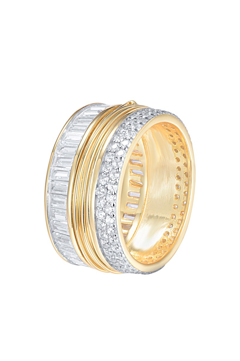 Ring van zilver doublé geelgoud ingelegd met zirkonia's.