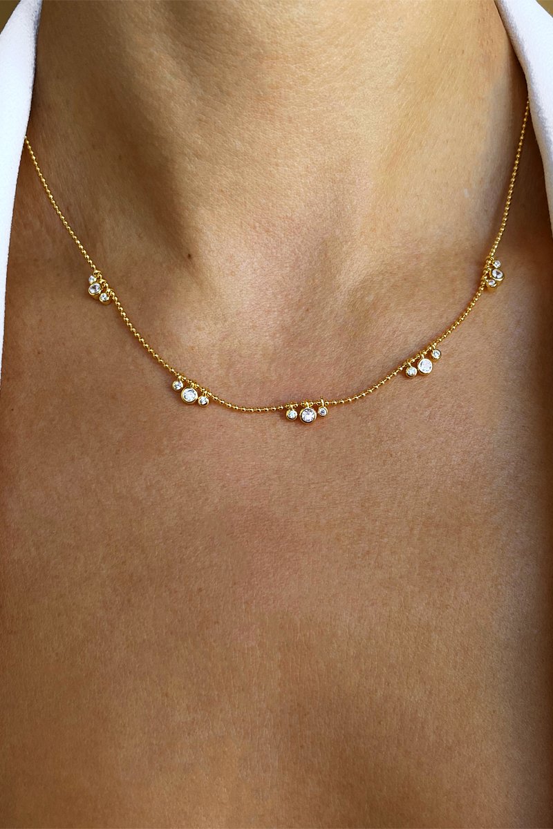 Ketting van zilver verguld geelgoud met zirkonia’s.