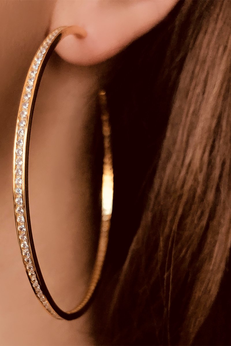 Creolen van zilver doublé geelgoud ingelegd met zirkonia's.