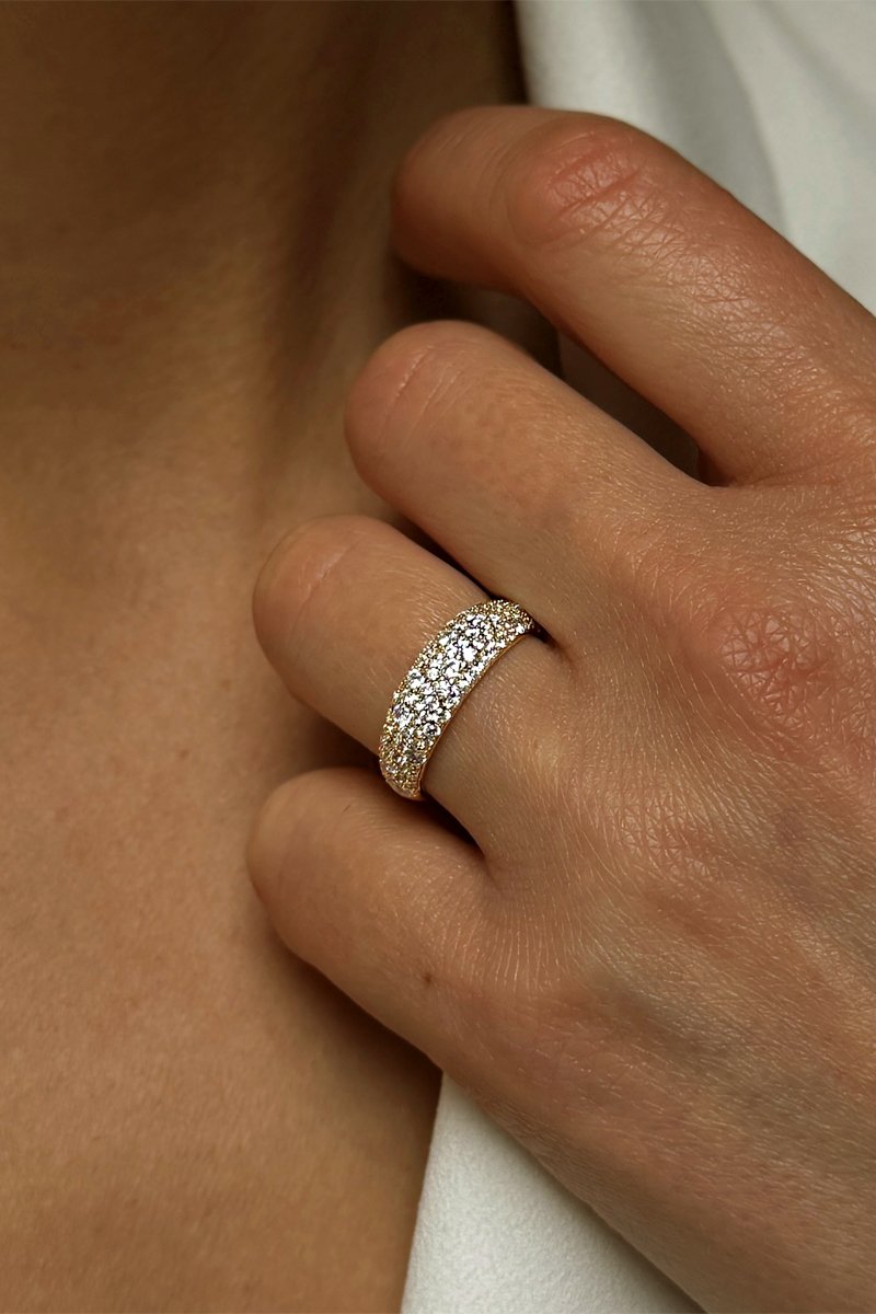 Ring van zilver doublé geelgoud ingelegd met zirkonia's.