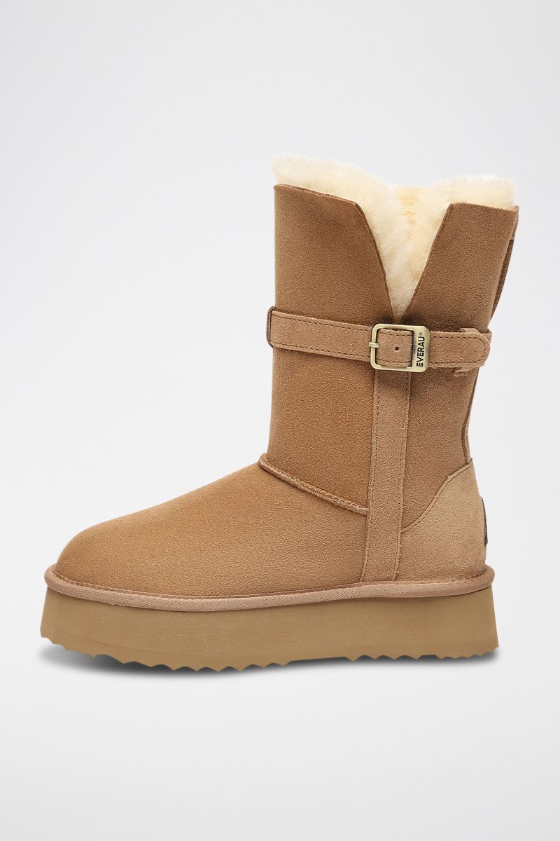 Gevoerde Nubuck Platform Enkellaarzen Brush - Camel - Bruin