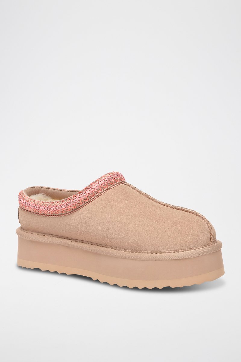 Gevoerde Platform Nubuck Pantoffels Wonga - Lichtbruin - Lichtroze