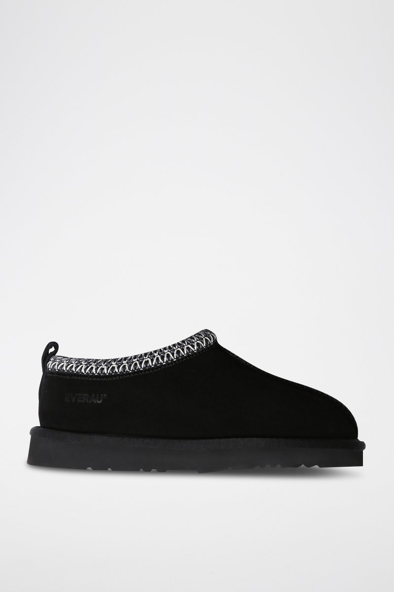 Gevoerde pantoffels van nubuck.