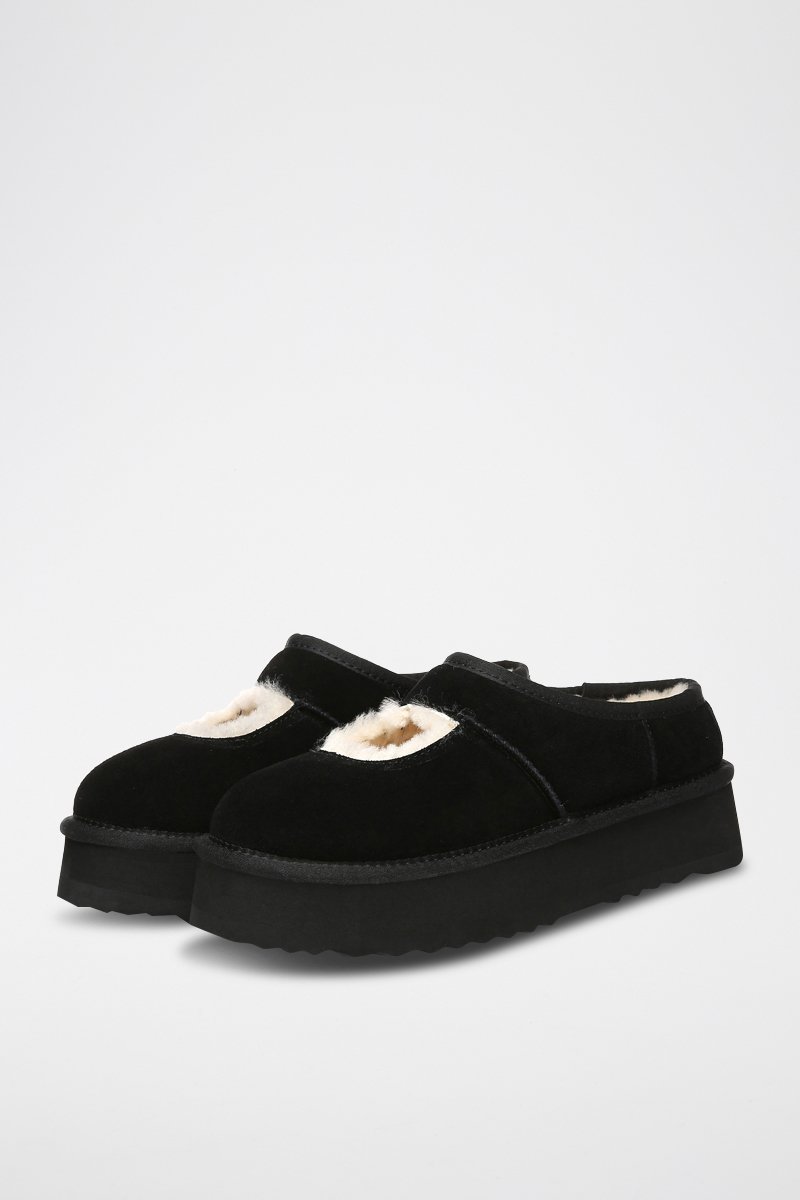 Gevoerde Nubuck Platform Clogs Plumed - Zwart - Zwart