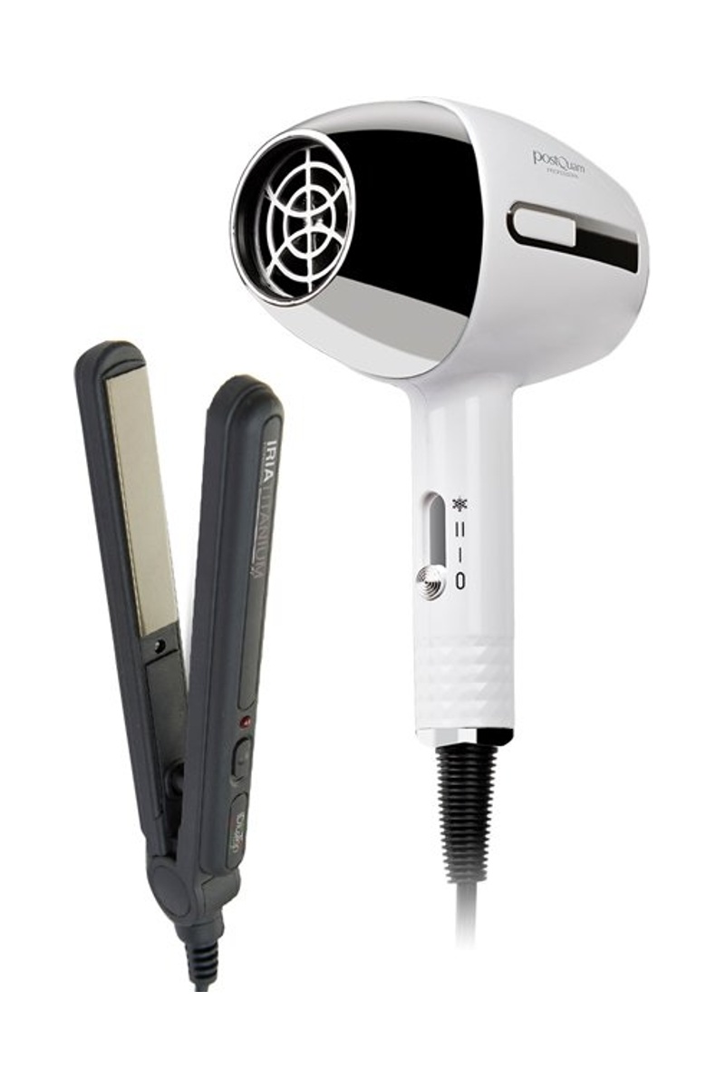 Föhn Postquam Air Compact zonder straling en Professionele Stijltang Ira Tiane XS