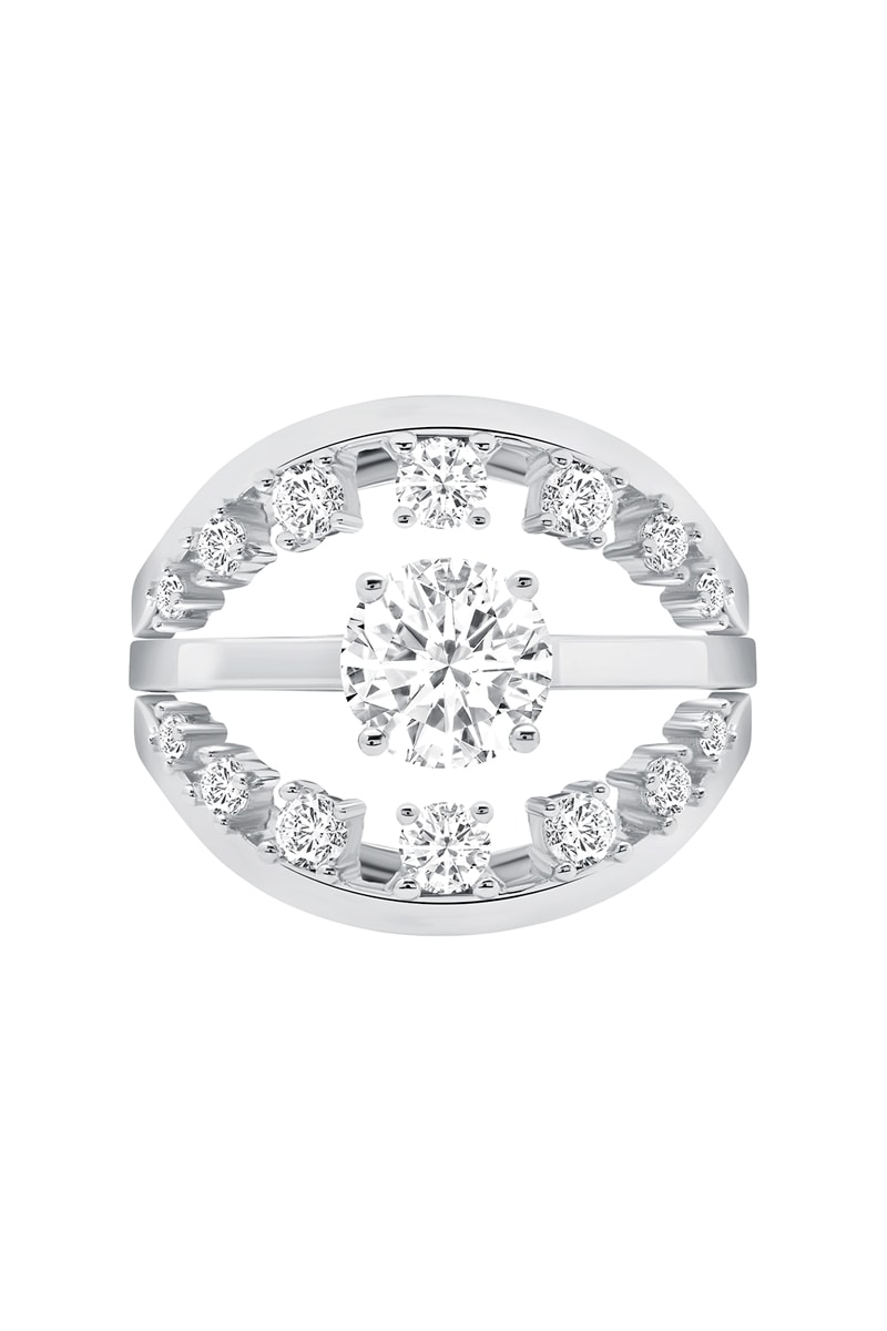 Ring van zilver doublé platina ingelegd met zirkonia's.