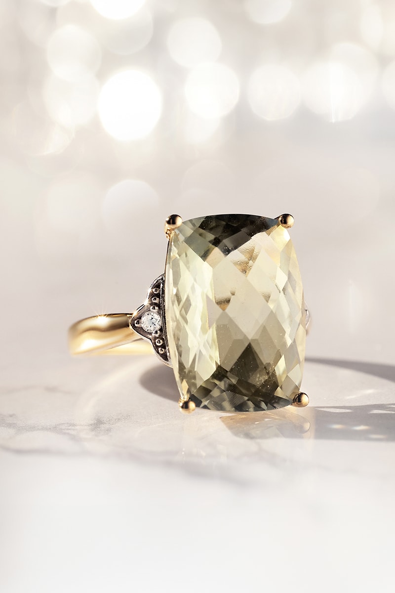 Bague Green Hill - Geelgoud, Kwarts en Diamanten