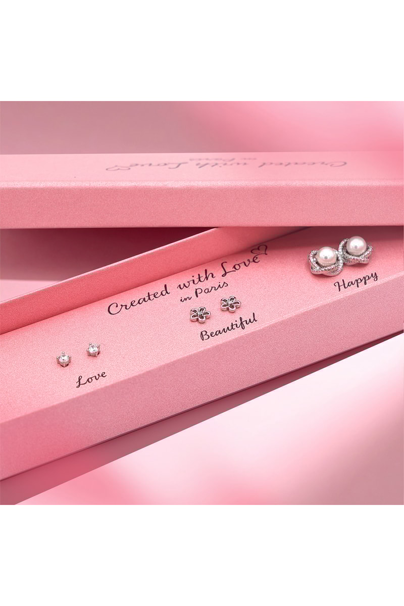 3 Paar Oorknopjes Flower - Zilverkleurig