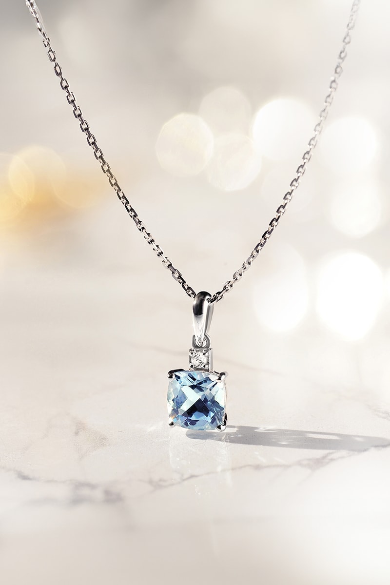Materiaal: witgoud 375/1000, diamanten 0,02 karaat/1 en topaas 1,5 karaat/1