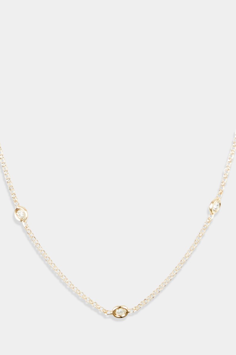 Ketting van geelgoud ingelegd met 7 diamanten.