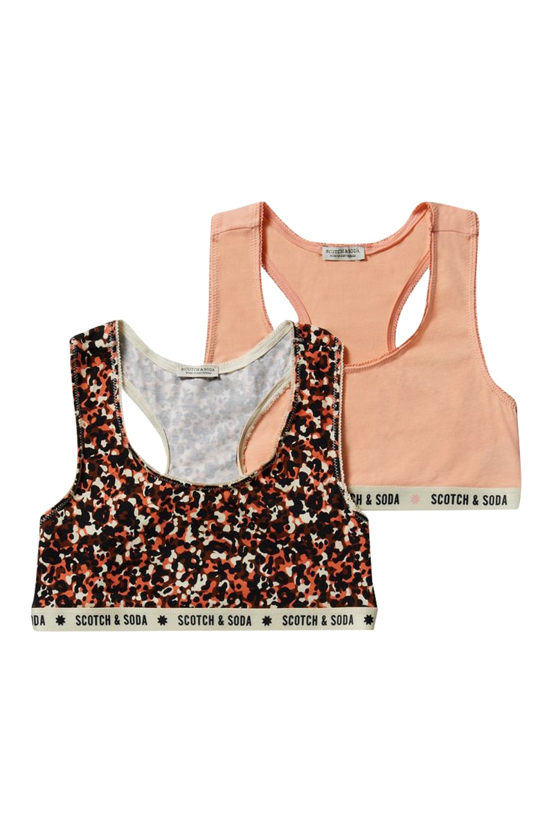 2 sportbeha’s van biologische katoenmix waarvan 1 met luipaardmotief.