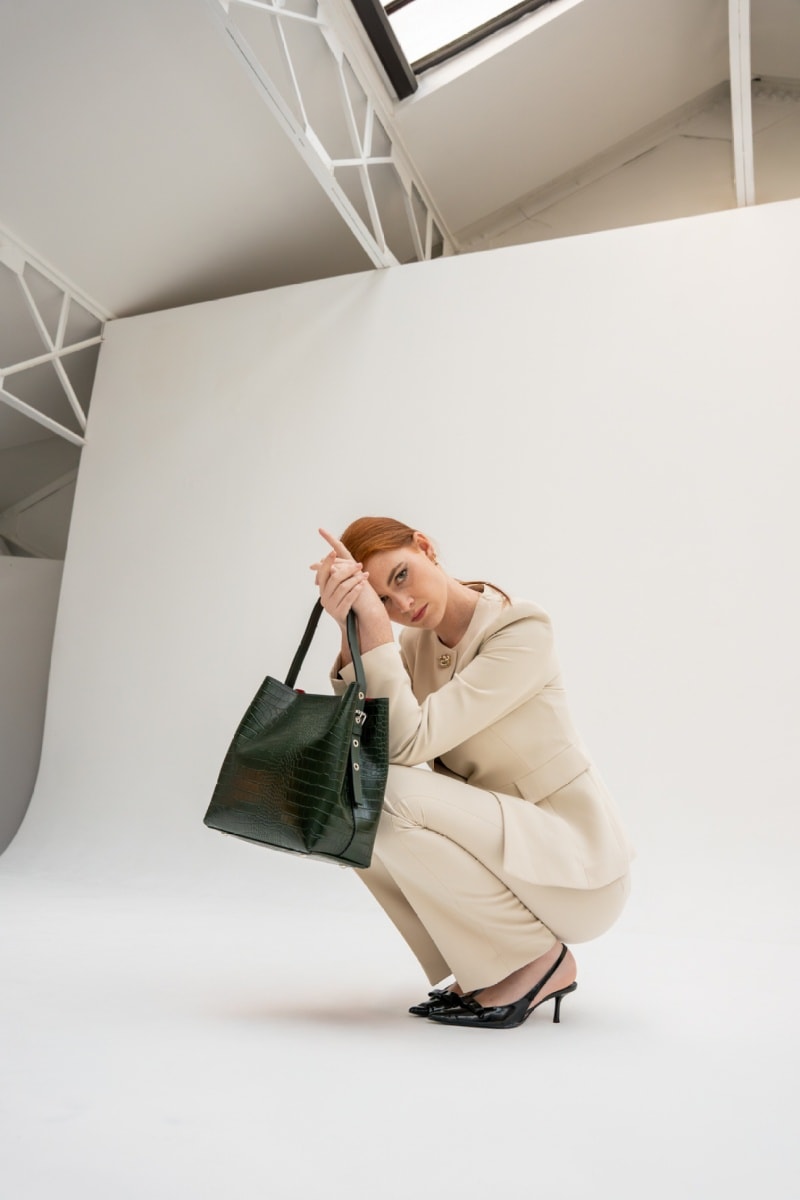 Leren Handtas Lola Croco - Groen