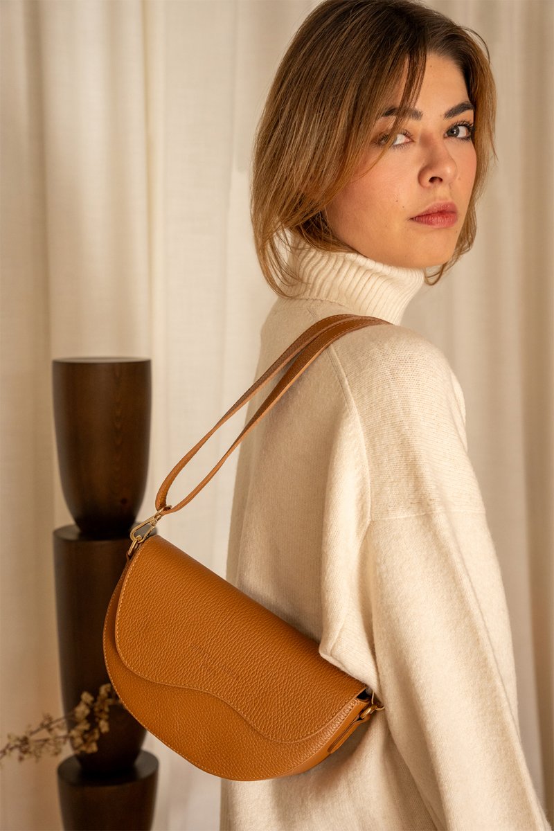 Handtas van gekorreld leer.