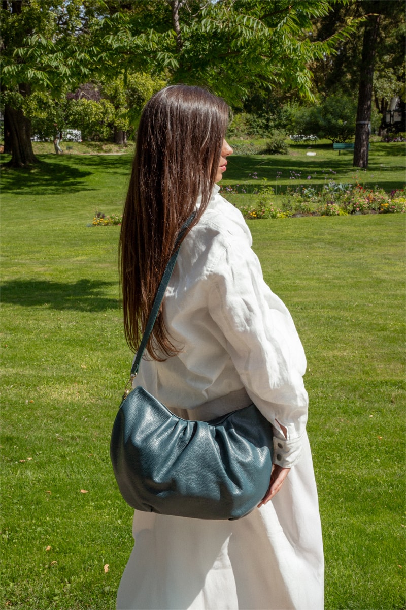 Leren Schoudertas Yuki - Pauwblauw