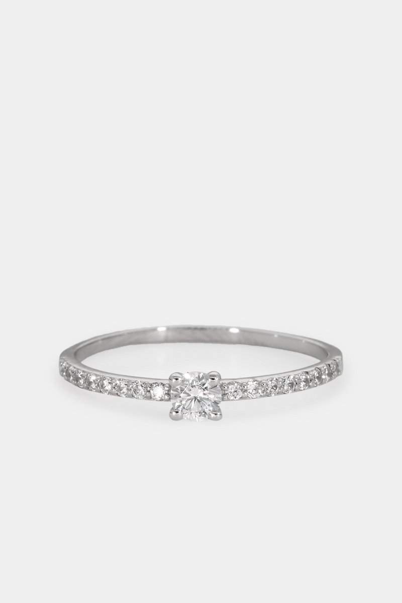Ring van witgoud ingelegd met 17 zirkonia's.