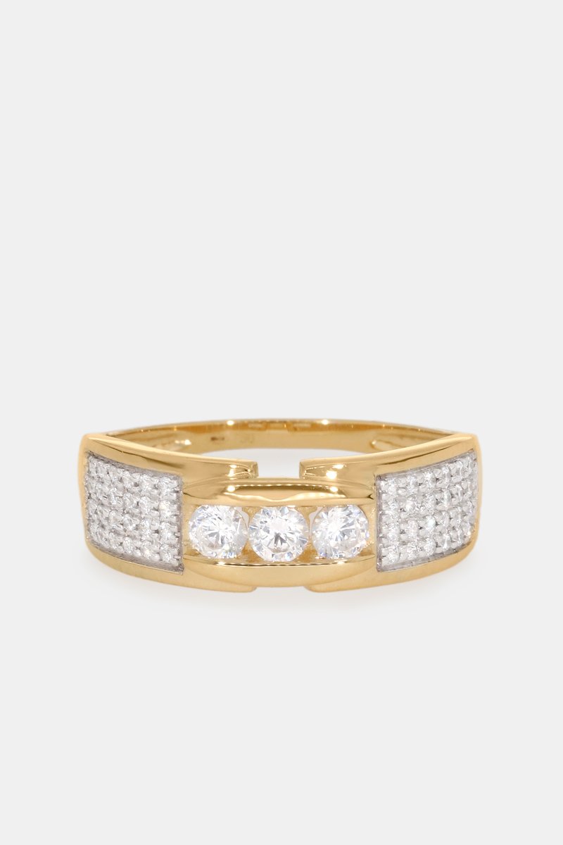 Ring van geelgoud ingelegd met zirkoniumoxide.