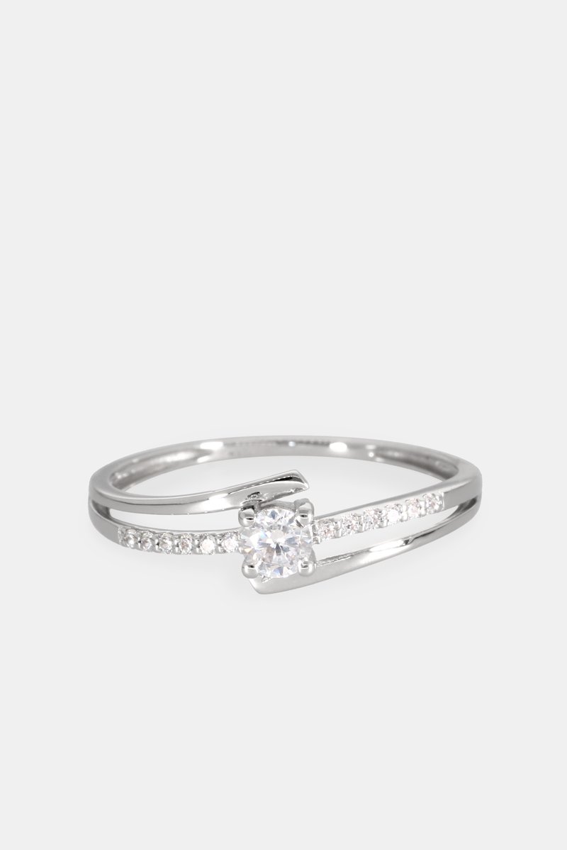 Ring van witgoud ingelegd met zirkoniumoxide.