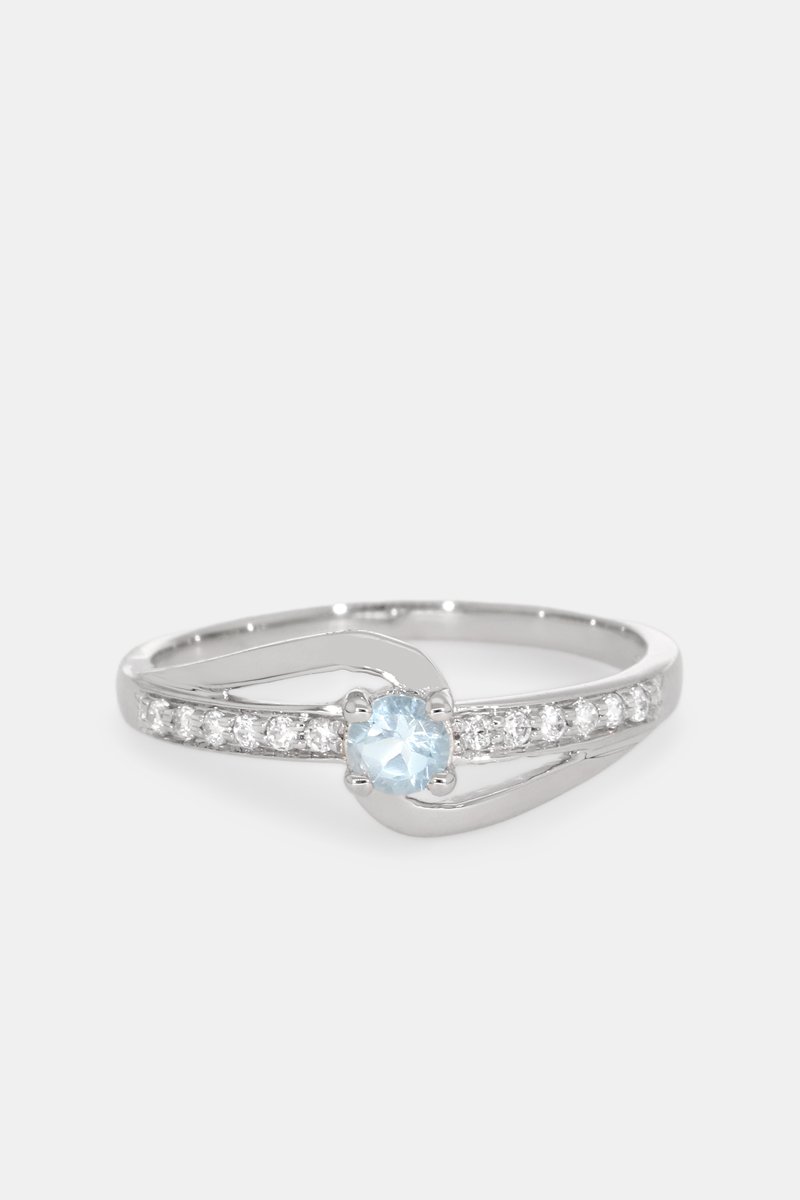 Ring van witgoud ingelegd met 1 topaas en zirkoniumoxide.