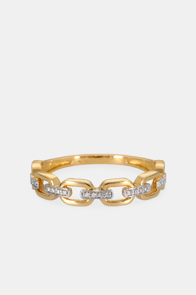 Ring van geelgoud ingelegd met zirkoniumoxide.