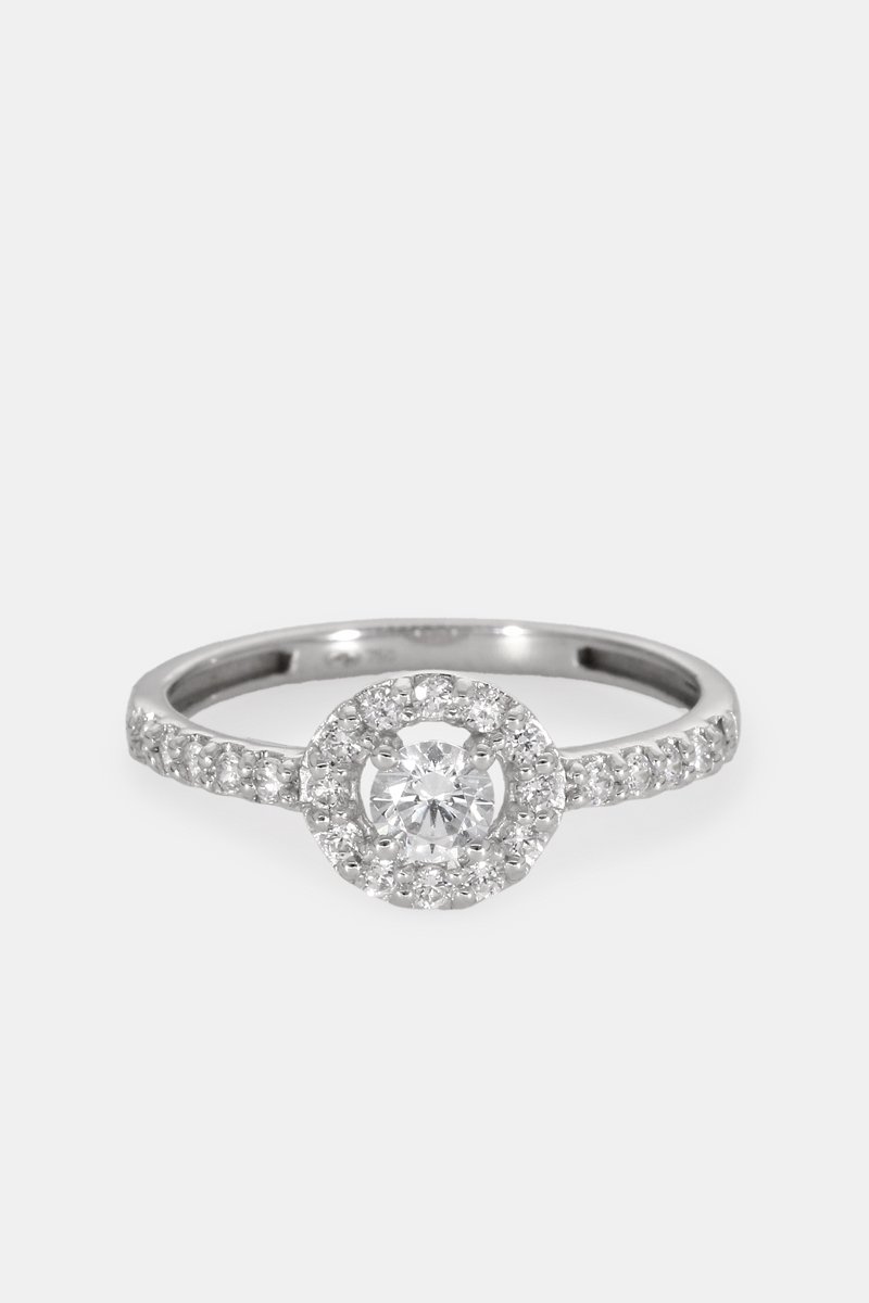Ring van witgoud ingelegd met zirkoniumoxide.