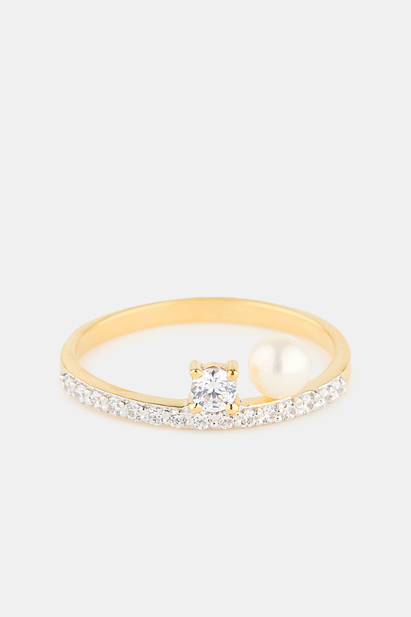 Ring van witgoud ingelegd met 1 cultivéparel en 1 zirkoniumoxide.