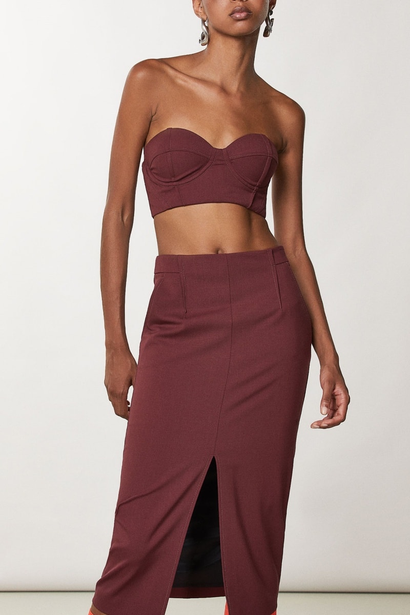 Crop top bustier van wolmix met beugels.