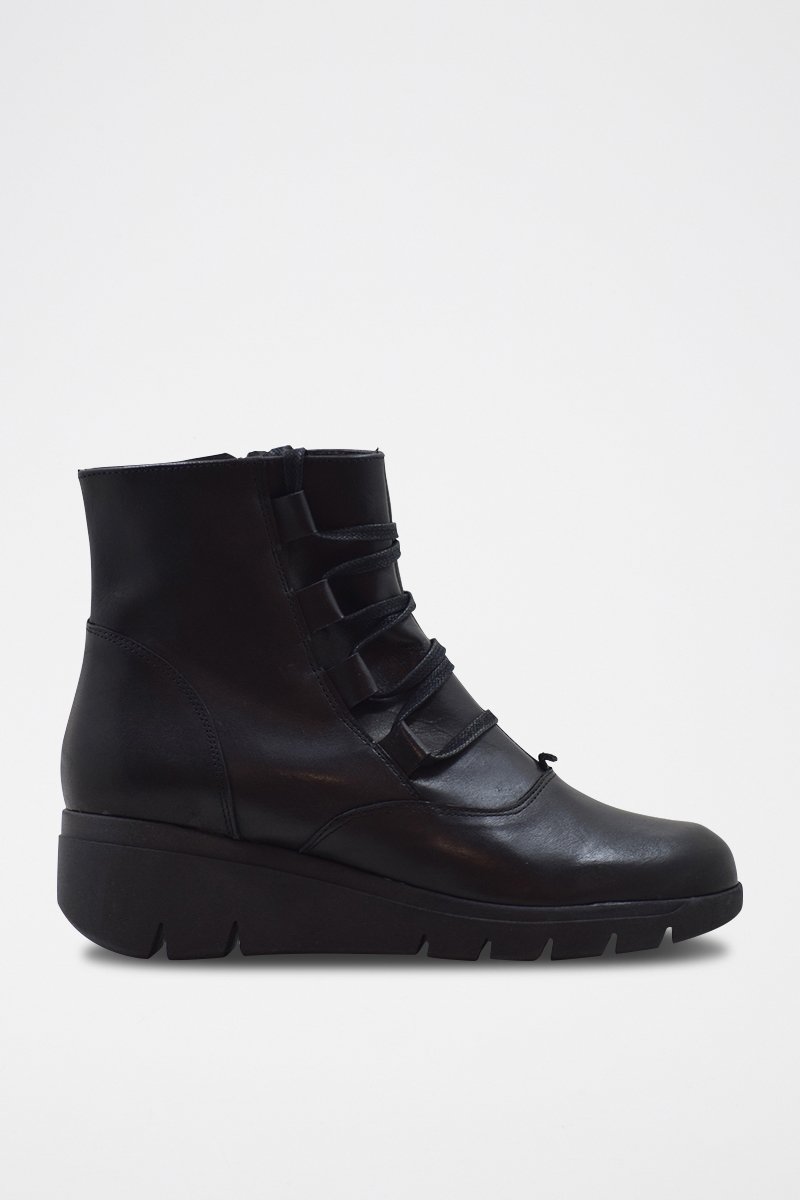 Leren Enkellaarzen met Sleehak - Zwart