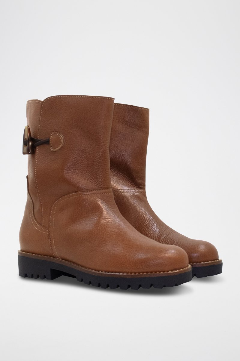Enkellaarzen van gekorreld leer.