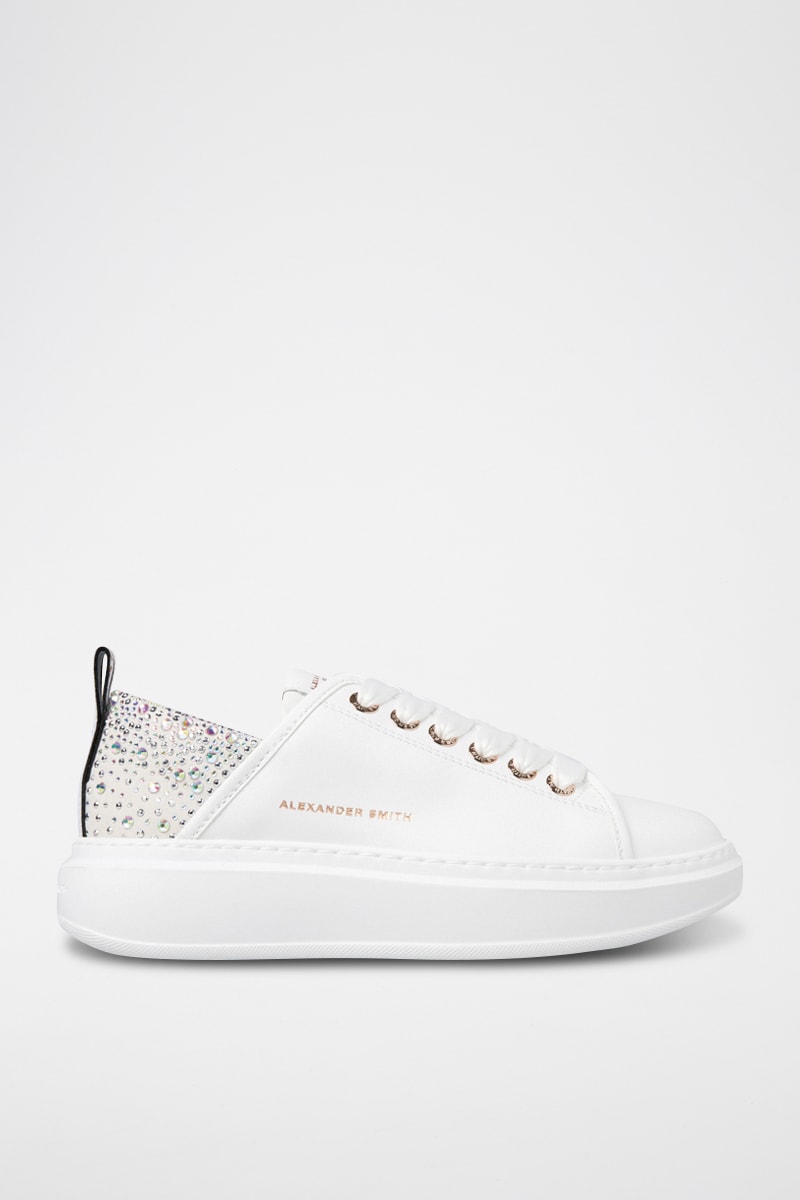 Leren Platform Sneakers Wembley - Wit en Glanzend Blauw