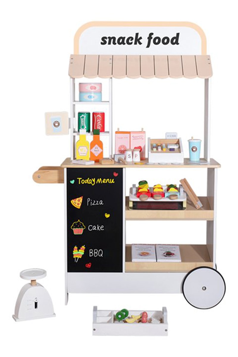 - Houten boodschappenkarretje