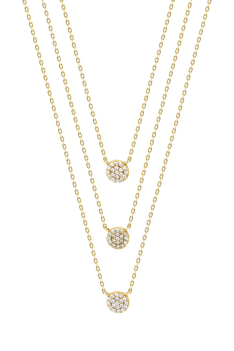 Ketting met driedubbele rij van verguld zilver ingelegd met zirkonia's.