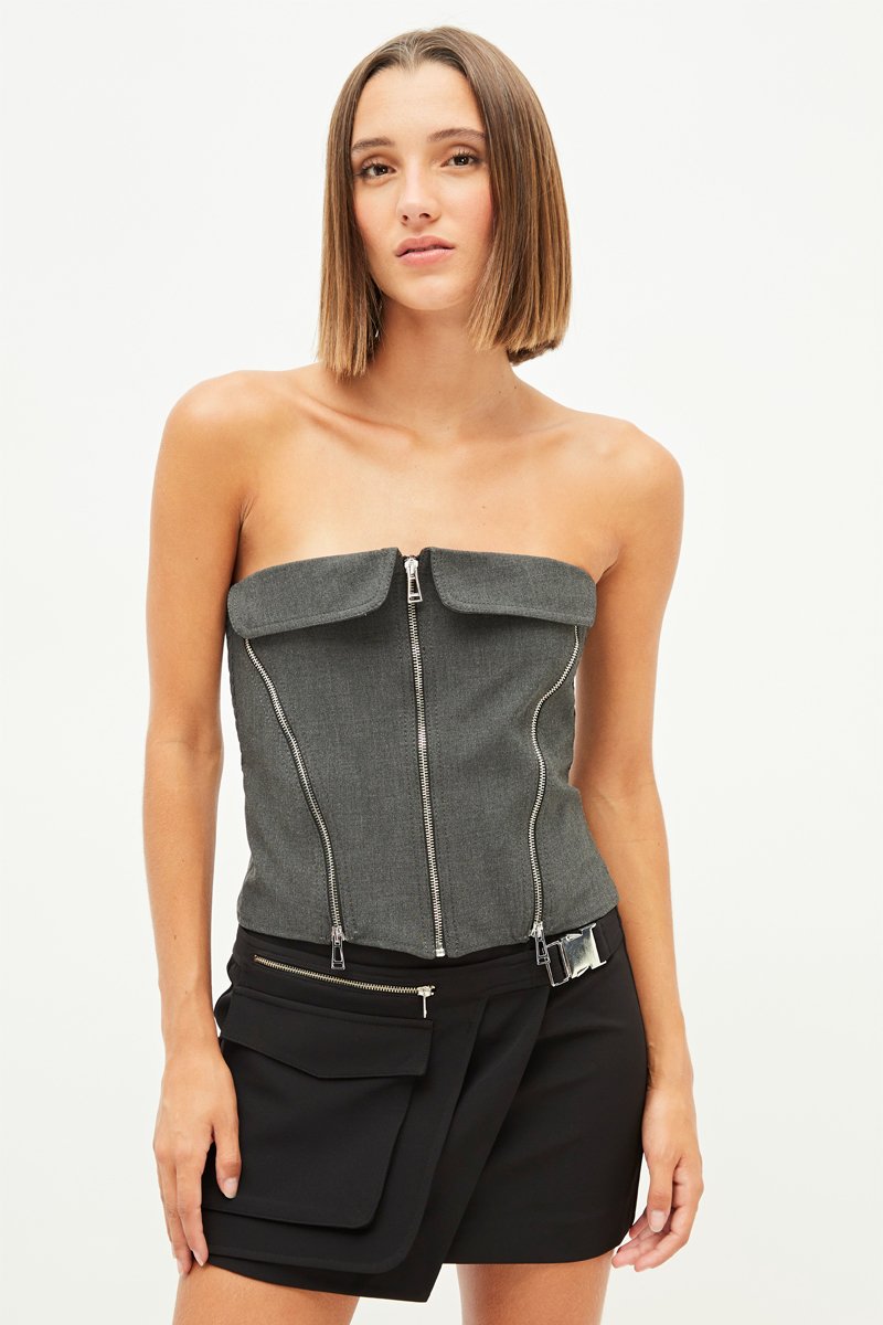 Strapless top.