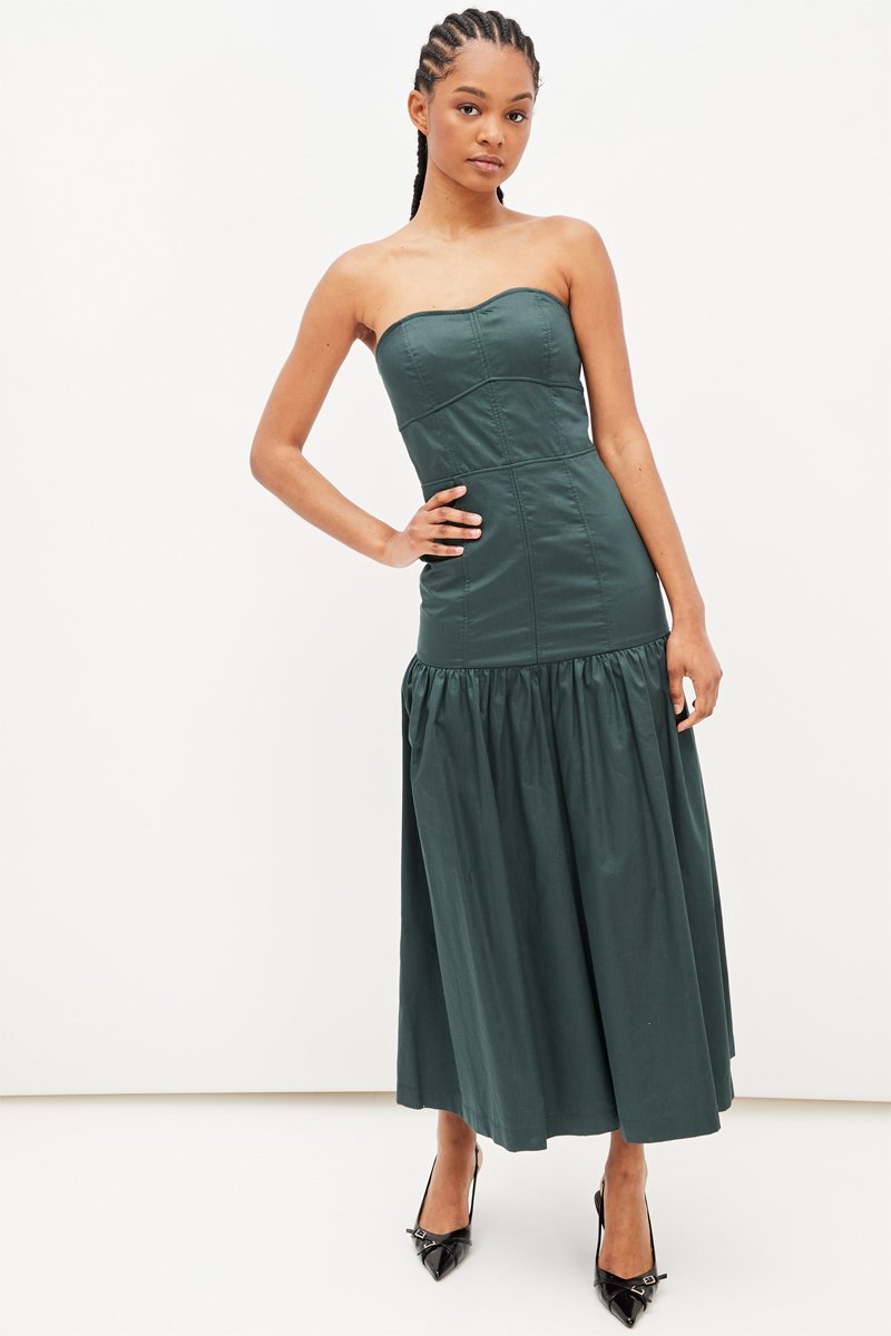 Strapless Jurk - Donkergroen