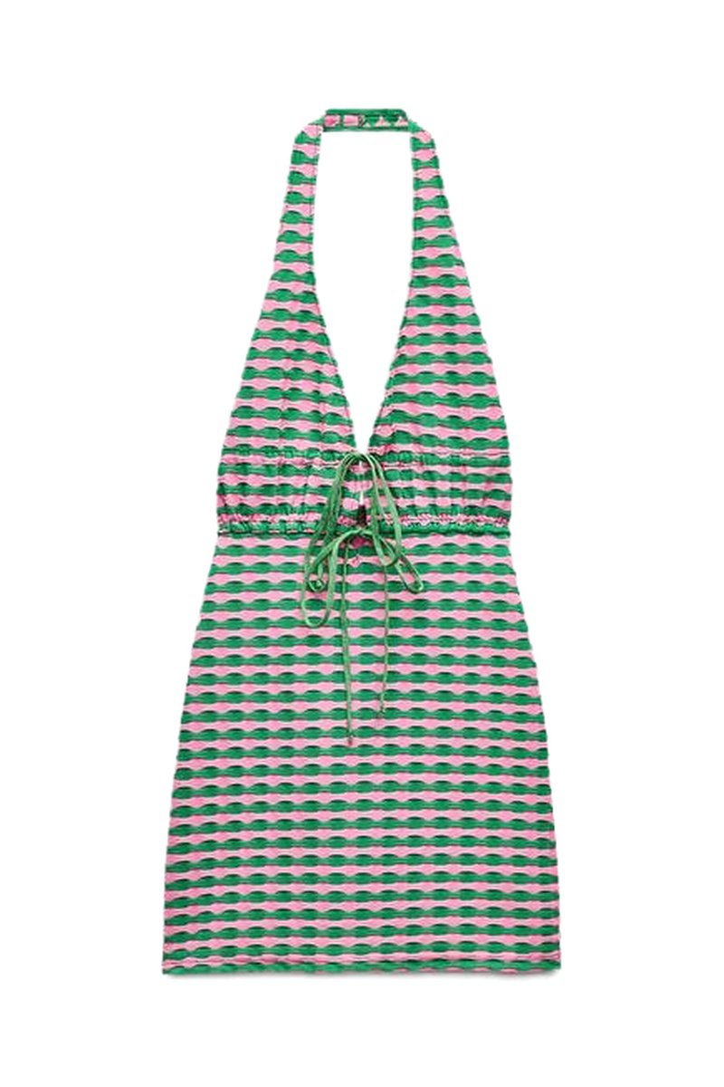 Nauwaansluitende Jurk - Lichtgroen en Roze