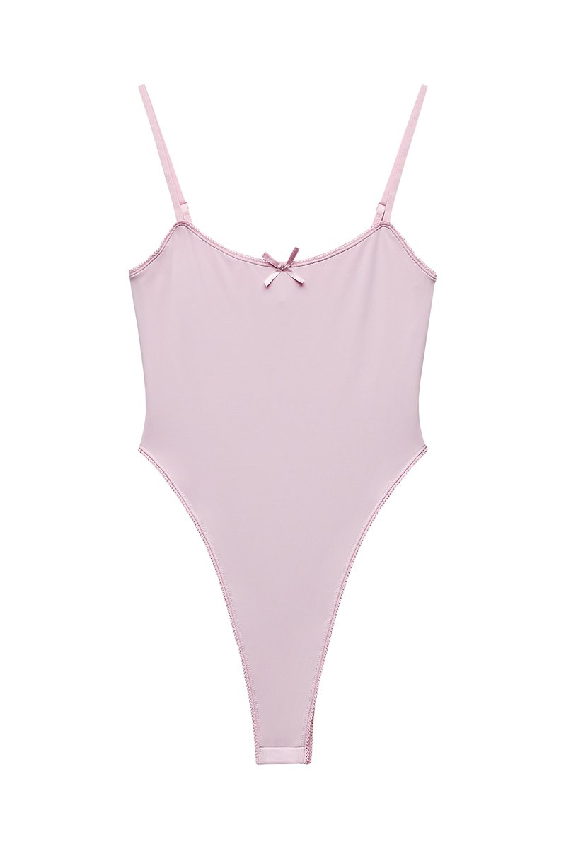 Kanten detail en strikje van satijnglans aan de voorkant.
