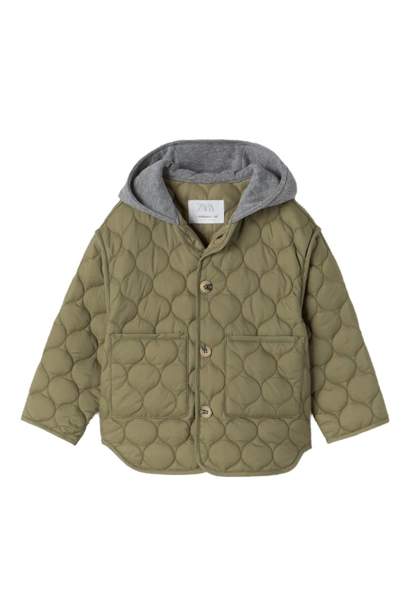 Gewatteerde jas met capuchon - Kaki