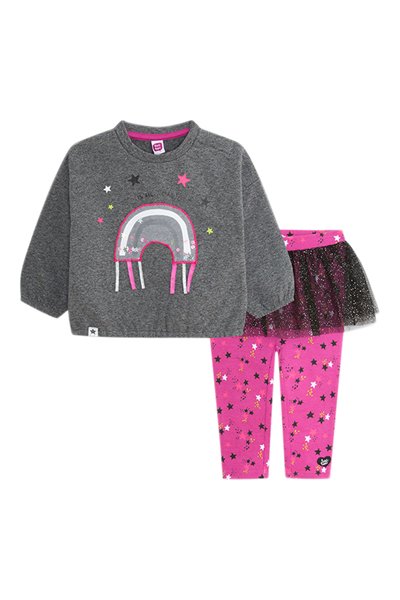 Sweater en Legging - Gemêleerd Donkergrijs en Roze