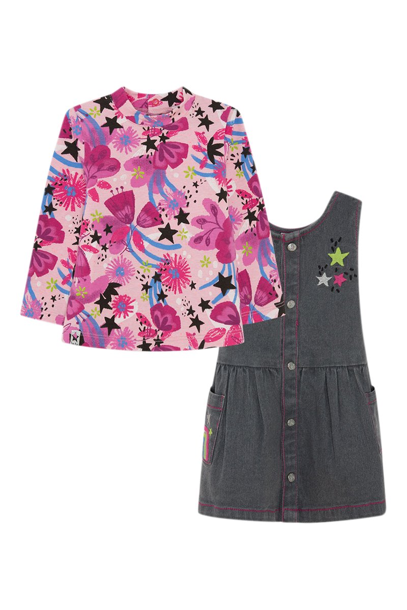 T-shirt en Spijkersjurk - Donkergrijs en Roze