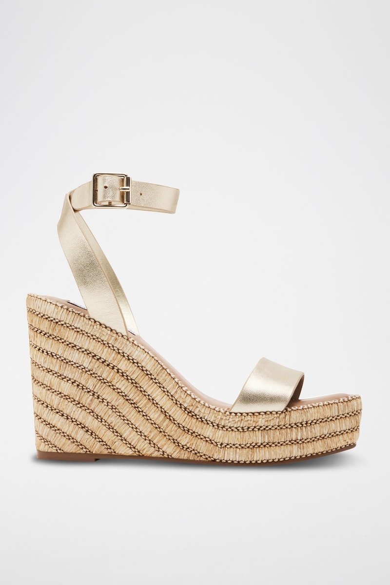 Leren Sandalen met Sleehak - Goudkleurig