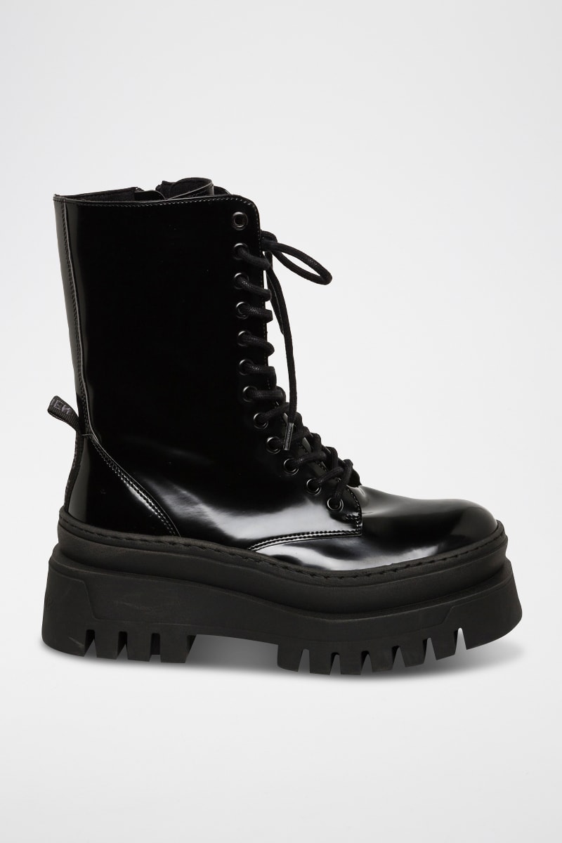 Gelakte enkellaarzen.