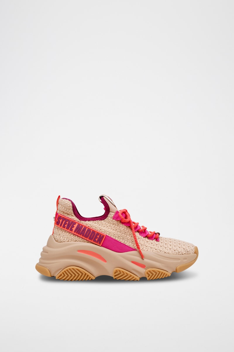 Sneakers - Beige en koraalrood