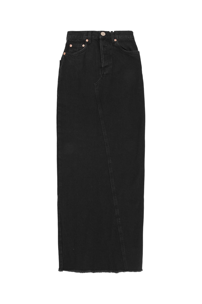 Rechte rok van denim en biologisch katoen.