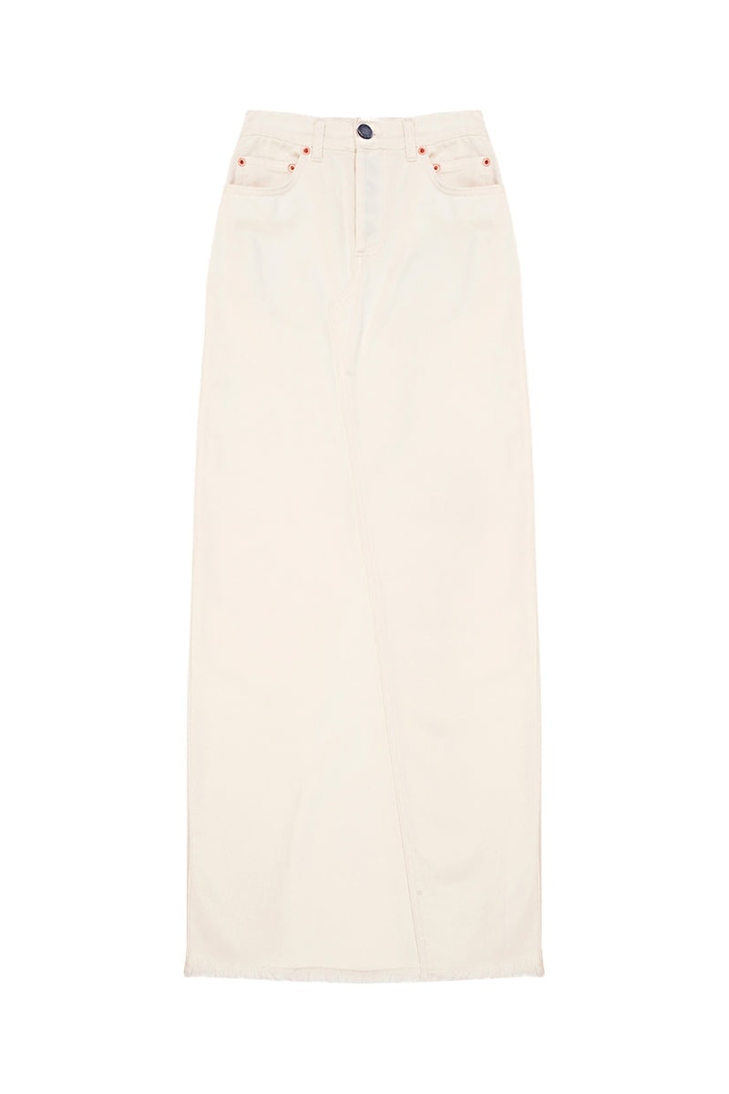 Rechte rok van denim en biologisch katoen.