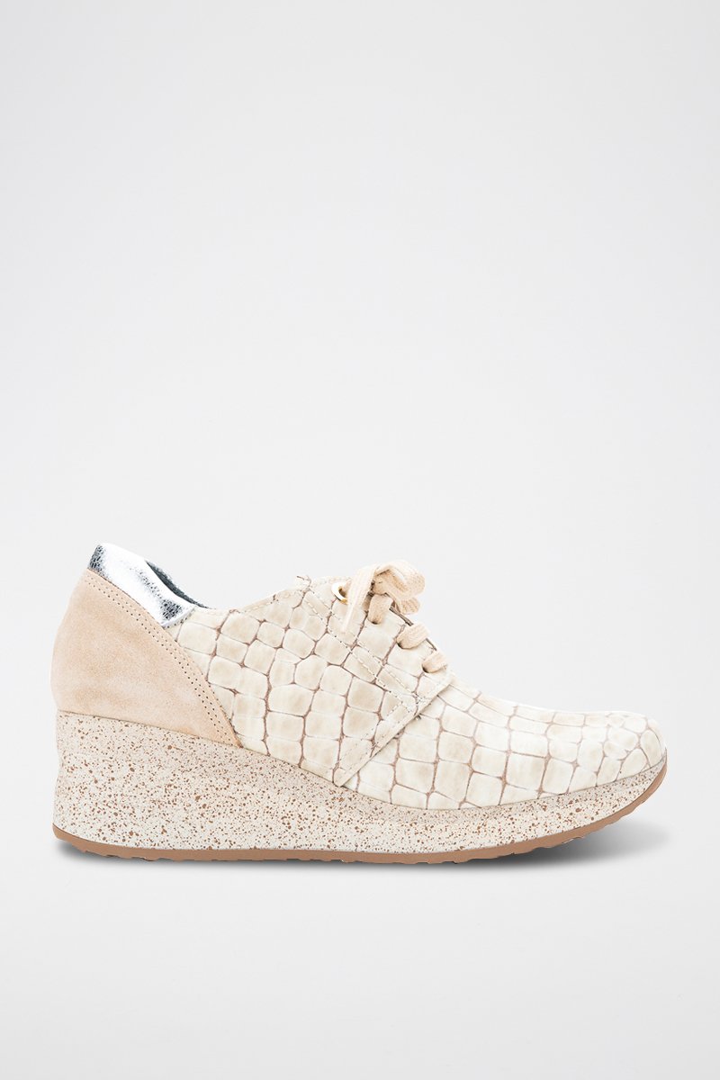 Leren Derby's met Sleehak - Beige