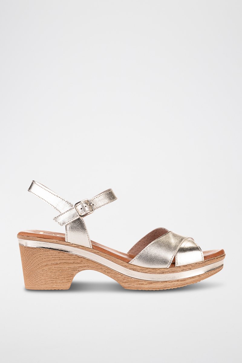 Leren Sandalen met Hak Metalizado - Goudkleurig