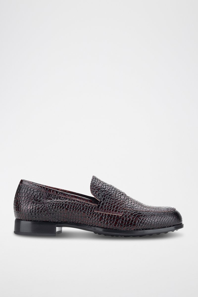 Mocassins van leer met krokodillenlook.