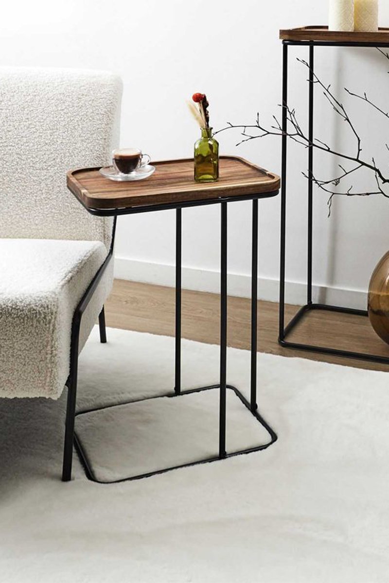 Dienblad van acaciahout met structuur van metaal. Compact en praktisch.
